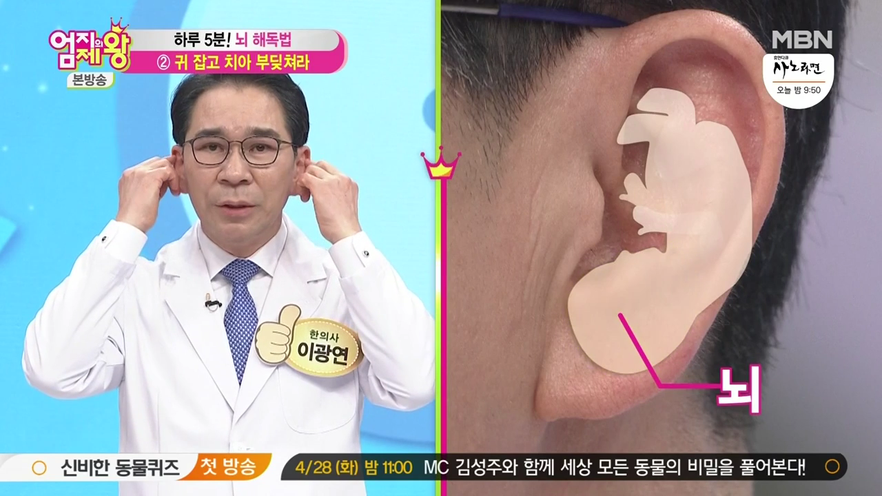 한의학 문헌인 <황제내경>을 보면 귀에는 우리 몸의 각 경락이 연결되어 있다고 기록되어 있는데요뇌와 연결된 귀 혈 자리를 지압하면서치아를 부딪치면뇌 해독과 치매 예방 효과를 두 배로 볼 수 있습니다