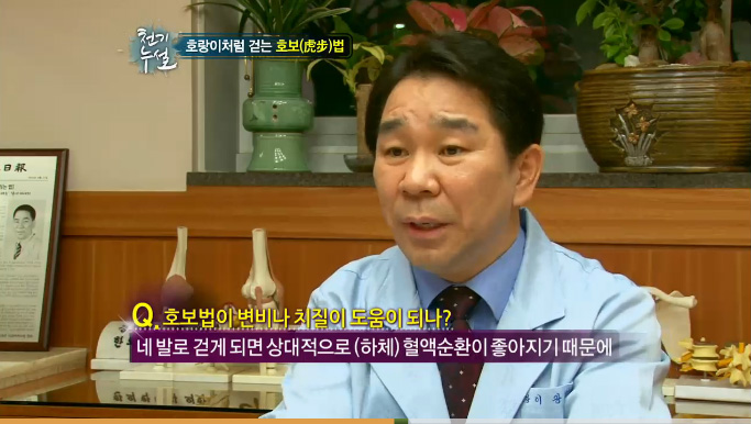 - 동물의 모습을 본 딴 무예 중에 호랑이의 걸음을 따라 하는 수련법을 호보(虎步)라고 부릅니다. 이 호보라는 수련법이 네발로 걷는 운동입니다.