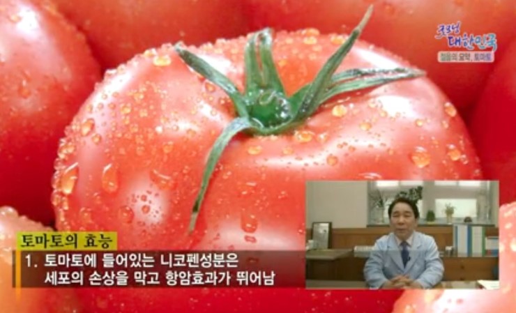 1. 토마토 안에 들어있는 리코펜의 성분에 대해 설명 부탁드립니다. A. 토마토의 붉은색은 리코펜 성분 때문입니다. 리코펜 성분은 세포 손상을 막고, 암세포를 제거해서 항암작용이 뛰어나고, 중풍이나 심근경색 등의 심혈관계 질환을 예방하는데 높은 효능을 보입니다. 2. 뇌졸중, 심근경색에 효과가 있다고 들었는데 어떤 작용에 의해 효과가 있는 것인지? A. 리코펜은 지질대사에 관여해서 몸에 해로운 콜레스테롤 수치를 낮추며, 노화의 원인이 되는 활성산소를 억제해서 뇌졸중, 심근경색과 같은 심혈관계 질환의 예방에 도움을 줍니다. 3. 토마토를 가열했을 때 리코펜의 함유량이 2배나 높아진다고 하는데 그 이유는? A. 토마토의 리코펜 성분은 열을 가해서 먹으면 더욱 좋습니다. 그 이유는 열을 가하면 토마토의 세포벽이 파괴되서 리코펜이 체내로 흡수되기 쉽게 빠져나오기 때문입니다. 또, 리코펜은 지용성 식품이기 때문에, 올리브유와 같은 식물성 기름을 이용하여 조리하면 더욱 흡수율이 높아집니다. 4. 토마토가 다이어트에 좋다고 하는데 그 이유는 무엇인가요? A. 토마토는 100g당 20kcal의 저칼로리 식품이면서 수분 함량이 높고, 토마토에 들어 있는 펙틴 성분은 위에 오래 머물기 때문에, 포만감이 오래갑니다. 뿐만 아니라 비타민과 미네랄이 풍부해서 토마토는 건강한 다이어트 식품입니다. 5. 식초의 효능도 알려주세요. A. 식초는 간의 기능을 도와 스트레스와 피로를 풀어주고, 살균효과, 골다공증 예방, 노폐물 배출, 소화력 증진, 지방 분해 촉진 등 건강과 다이어트에 아주 좋은 식품입니다. 6. 토마토 식초가 다이어트에 어떤 영향을 주는지? A. 토마토는 다양한 비타민과 미네랄 성분이 있으며, 식초는 토마토의 소화, 흡수를 높여줄 뿐 아니라 지방의 분해와 노폐물의 배출을 돕기 때문에, 토마토 식초는 다이어트에 좋은 궁합입니다.