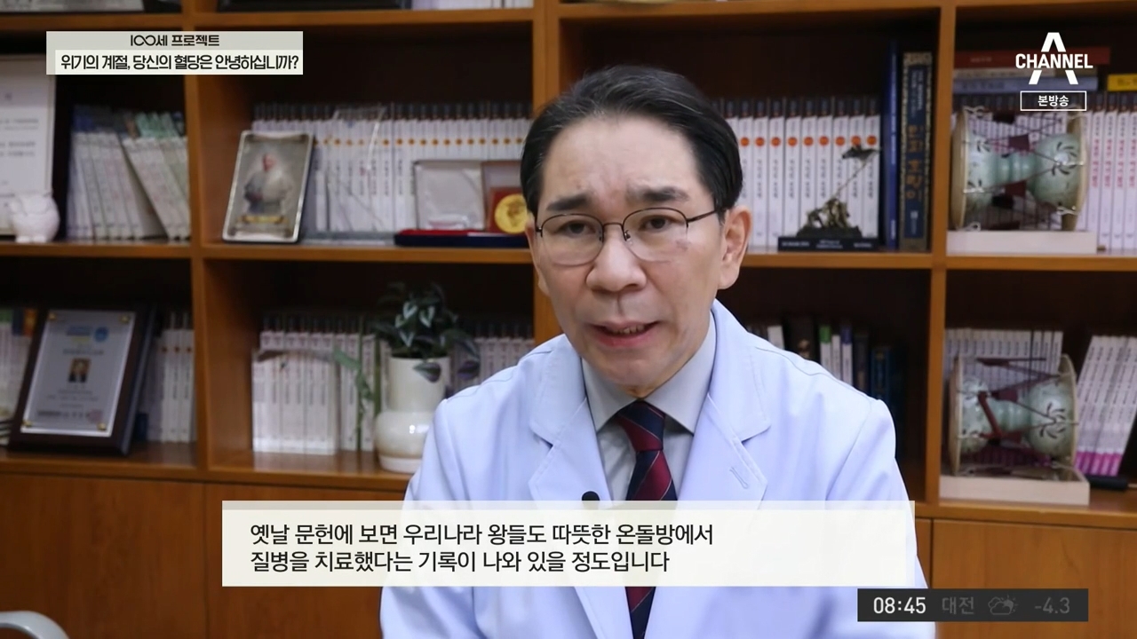 예로부터 차가운 몸이라는 것은 만병의 근원이라고 했습니다. 현대의학적으로 보게 되면 체온이 내려갈수록 혈당에 민감해지고 염증 반응이 일어나기 쉬운 상태가 됩니다. 한의학에서는 이것을 양기가 허한 상태, 양허증이다 이렇게 얘기했는데요. 옛날 문헌에 보면 우리나라 왕들도 따뜻하게 온돌방에서 병을 치료했다는 기록이 나와 있는 경우가 많습니다. 특히 세종대왕 같은 경우에는 궁 안에 구들방 초가를 만들어놓고 자주 이용했고 광해군도 황토방에서 종기를 치료했다는 기록이 남아있을 정도입니다. 결론적으로 우리 몸을 따뜻하게 해서 면역력을 키우는 것이 겨울철 당뇨 관리나 여러 가지 예방에도 큰 도움이 된다고 할 수 있습니다.